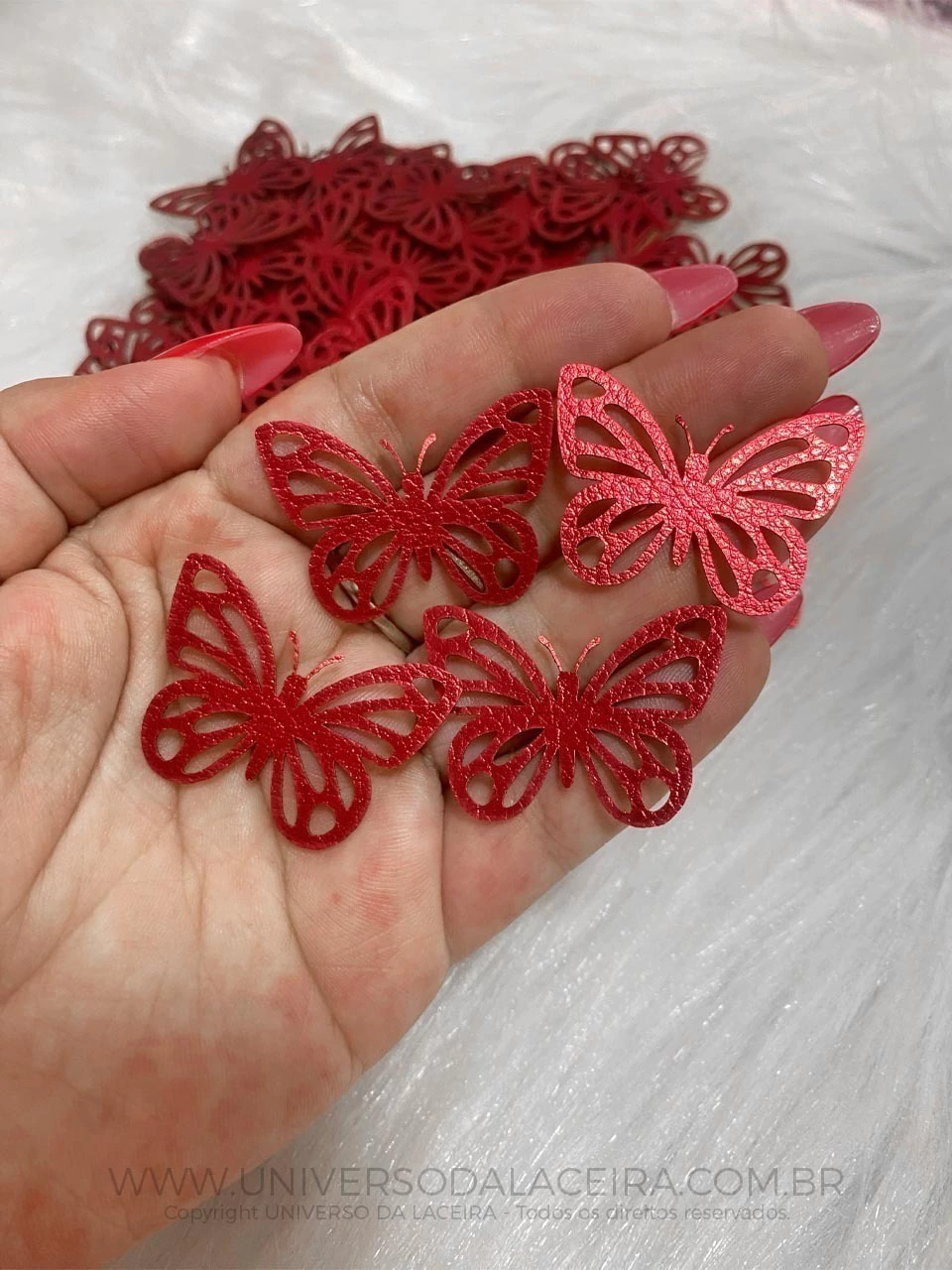 BORBOLETAS DE LONITA Encante seus projetos com nossas borboletas de lonita, meticulosamente cortadas a laser em nossa própria indústria. Este aplique foi desenvolvido para customização de peças, criação de projetos, confecção de laços, tiaras e artesanato em geral.
